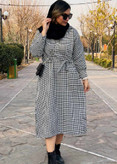 کفتان مشکی سفید با مدل پیچازی بلند تا زیر زانو و حالت لش با کمربند برای تننظیم سایز