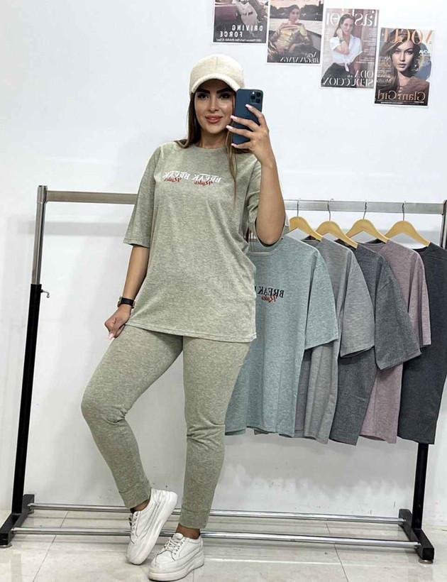 ست دوتکه زنانه و دخترانه تیشرت شلوار مولینه سرامیکی ریبوک